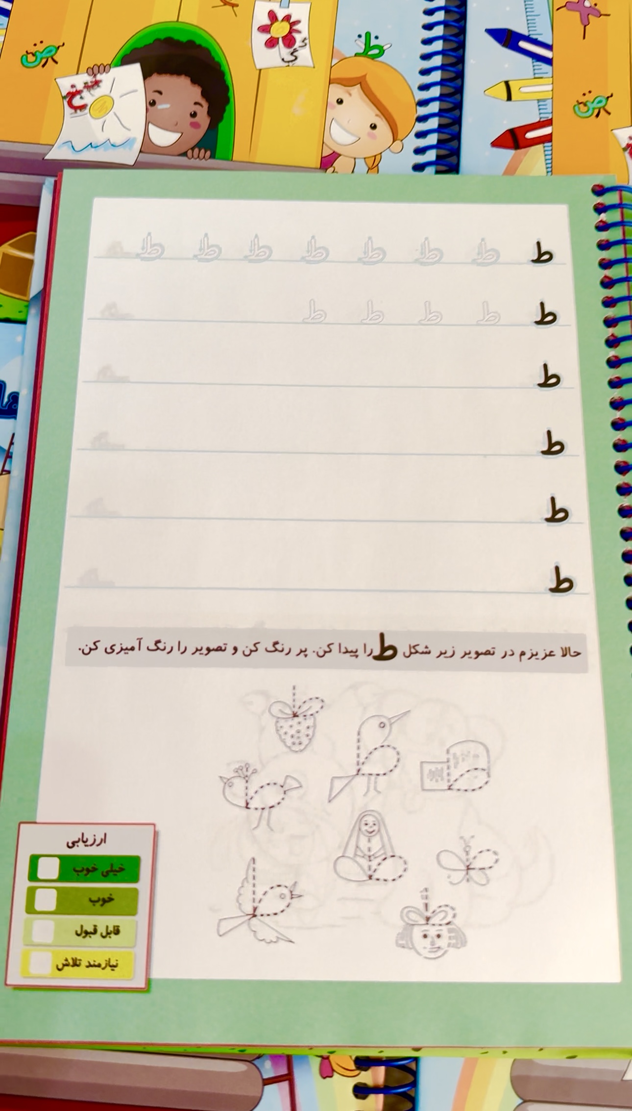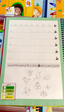 ۱: همحاشیه داره ۲: برگه مخصوص املا شب داره ۳: برگه برای نوشتن لغات داره ۴: نوشتن و تمرین لوحه ها داره ۵: پر کردن خط چین های لوحه داره